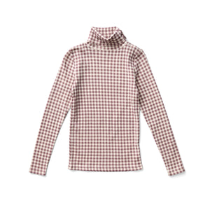 • SNAP TURTLENECK- GINGHAM PRINT, CHERRY